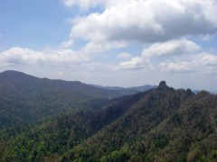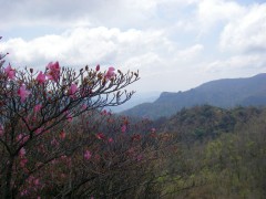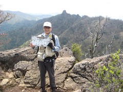 | (前ページからの続き) しばらく展望を楽しんだら今日の終点のお姫山を目指します。上りと反対の急斜面を降ります。この辺りの雰囲気も何とも言えません。降りきると再び上りとなりお姫山山頂です。五葉岳よりも狭い岩場の山頂です。鹿納坊主がまじかに迫っています。景色を堪能して下山は往路を戻ります。夏木山を過ぎて夏木新道と犬流れへの分岐地点鞍部から夏木山と反対側の飛び出たピークに寄り道をして来た道を戻りました。登山口に着いたのは15時15分でした。 <コースタイム> 夏木新道登山口-(50分)-あけぼの平-(35分)-船石-(5分)-稜線-(15分)-夏木山山頂-(20分)-大吹峠分岐-(15分)-五葉岳-(30分)-お姫山-(20分)-五葉岳-(15分)-兜頭巾分岐-(80分)-夏木山-(80分)-夏木新道登山口 ※休憩は含んでいません。全行程で約8時間30分かかりました。 <感想> 鋸尾根を楽しみにしていましたが、通行止めを行くのは安全登山に反することです。断念するのも勇気のいることだと私は思いました。リーダーのMORIさんの適格な判断で今日も無事に下山できたことと感じました。感謝です。 今回はアケボノツツジやシャクナゲ、ミツバツツジ、ヒカゲツツジと思う存分花を楽しみました。それと山仲間とのキャンプも格別です。本当に楽しい3日間でした。それとメンバーからの写真で自分が映ったものが掲載できたことも感謝です。良き想い出となることと思います。 |