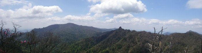 | ▲お姫山から見る鹿納坊主と大崩山 | ||