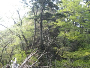 | 犬流れ登山口 | まずは植林帯 | 奇木 |