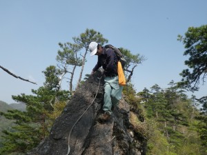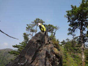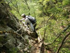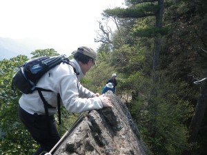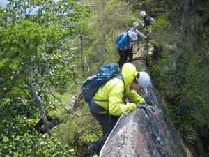 | MORIさん | 岩壁をトラバース | シャクナゲが未だ蕾 |