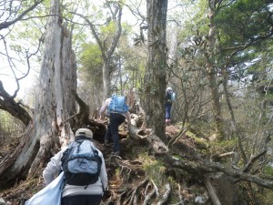 | 岩のヤセ尾根 | 振り返る | 夏木新道との合流地点 |