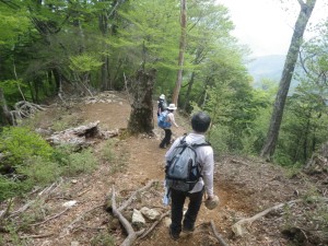 | 休憩中(MORIさん撮影) | 夏木新道を降る | 大崩山が見える |