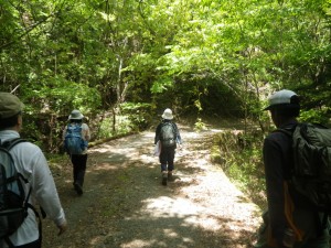 | もうすぐだ | 登山口にて(MORIさん撮影) | 林道を歩く |