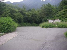 三叉路は真っ直ぐ(お地蔵さんがある) 登山口手前の駐車スペースに停める 登山口