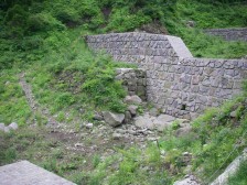 国道57号線を大分方面へ向かいJR宮地駅の先のT字路を右折(パチンコ屋さんのところ)し、踏切を超え、直進すると狭い道の2差路にぶつかる。日の尾峠と桜ケ水と書かれた標識がある(写真左下)左折し、日の尾峠を目指す。狭い道路が続き、別荘地を抜けると林道らしき道となる。三叉路にぶつかるが、直進する。(右は日の尾峠)正面にお地蔵さんがある。狭いコンクリートの林道を進むと左手に駐車スペースがある。さらに進むと行き止まりで登山口となる。ここにも駐車スペースはある。