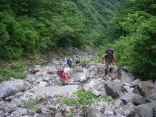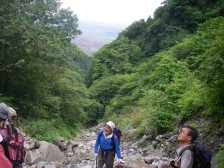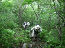 ガレバを喘ぐ登山者 ここから森の中へ(休憩) 眺めは最高