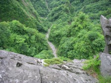 天狗のコルにて 天狗のコルの岩壁 下を見る