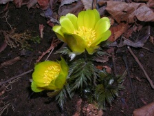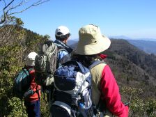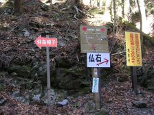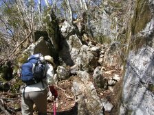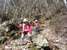 前ページからの続き 広場から約17分で元井谷コースとの分岐に着くきます。尾根道を行き明るい自然林を楽しみ展望台と書かれた標識を見て急坂を登ると山頂です。山頂は360度の展望で一房山や白髪岳などが見えました。今回はここで昼食です。帰路は展望台標識まで戻り、展望台の方へ進みます。展望台に立ち寄り(人工的な展望台ではありません)眺めを楽しんだら再び下って行きます。谷間を下ります。かなり急ですが、その分時間もあまりかかりません。 山頂から約50分で仏石分岐で朝歩いてきた道と合流です。ここより30分で登山口です。 <参考コースタイム> 登山口−(20分)−牛の鼻ぐり岩−(20分)−仏石分岐−(30分)−仏石−(20分)−福寿草群生生地−(20分)−仏石・・分岐広場−(10分)−元井谷との分岐−(50分)−仰烏帽子山頂−(10分)−展望台分岐−(8分)−展望台−(30分)−仏石分岐−(30分)−登山口 ※休憩は含んでいません。あくまでも参考時間です。(全行程で約5時間〜6時間) <感想> フクジュソウと言えば、仰烏帽子山。確かに見事なフクジュソウでした。しかし、この山はそれだけでなく、沢あり展望あり岩場ありとフクジュソウ以外にもたくさん魅力のある山でした。今回は日帰りでしたが自宅からの走行距離は560Kmとかなりありましたのでやはり一泊するほうが楽だと思いました。また、登山口までの道で途中舗装されていないところがありますが、車高が低い車は底をすりながら行くことになりますので注意です。 <出会い> MORIさんのネットでの知り合いNandenさん一行に会いました。噂は聞いていましたが、まさかこんなところで・・・・でもここに来ることは知っていたそうです。 また、どこかでお会いしましょう。 |
