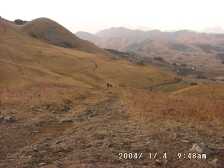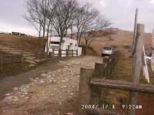 | 舗装された道路 | 今回のコース 茶が床園地から舗装道を広谷湿原に向かって歩きます。しばらくすると左手に中峠の標識と九州自然歩道の標識があります。ここが登山口となります。少し行くと再び「貫山」の標識があるので右に登って行きます。景色の良い草原(今は枯れていますが)の中、石灰岩の羊群原(カレンフェルト)を見ながらなだらかな道を行きます。アップダウンを繰り返し、「四方台」と書かれた標識がある大平山との分岐点につきます。少し下り舗装された道が横切り(一般車乗り入れ禁止)。ここで一息ついて最後の急斜面を一気に登ると山頂iに到着です。帰路は山頂の一番北側に貫への標識があります。階段を下るとすぐに「芝津神社上宮」です。再び階段を下ると水場があり仏像が祭られています。雑木林の中をさらに下り、杉林をとおり、やがて舗装された林道に出ます。林道に出たら斜め右に横断すると砂利道の林道の入り口があるのでその林道を下っていきます。行き止まりになると右手に降り、「たぬき」がたくさんある登山口に到着です。鳥居をくぐり舗装道に出ればバス停まで15分程度です。(茶が床園地の近くにはキャンプ場があります。) |