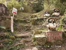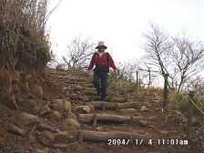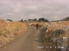 2004/1/4 天気 晴 貫山の麓の近くに住んでいながら、昨年は一度も登頂していませんでした。それで、今年最初の山は、貫山にしようと決め、家内とでかけました。 今回は、昨年車の免許を取得した長男に平尾台まで送ってもらい、わが町「貫」に下山することにしました。 貫山は、北側から見るとその山容は富士のようで「企救富士」とも呼ばれています。 また、麓には芝津神社下宮があり、山頂直下には上宮があります。最近だと思いますが新しく整備された登山道、地元の小学生が作った道標や案内板と、以前は寂しい登山道だったのが、楽しくて明るい登山道に変わっていました。山頂直下の登山道はかなり整備(造成)が進んでいました。(「自然破壊」という意味では思わしくないんですが・・) |