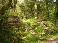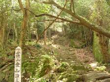 今回のコース 上貫バス亭より車道を貫山目指し歩きます。地元豆菓子で有名な「友口」が右手にして進むとバス亭より15分で芝津神社に着きます。芝津神社には「梵鐘(ぼんしょう)」とい県指定文化財が奉納されいます。さらに車道を進むと徐々に道も細くなり行き止まりとなります。古い鳥居をくぐり「たねき」の置物がたくさんあるところが山道への入り口です。(貫山権現参拝道口の標識) しばらくシダの茂る山道を上ると林道(砂利道)に出ます。林道をさらに歩くと幅の広い舗装された林道に出ます。斜め右の向かいに登山口の標識があります。バス亭より1時間弱でこれます。登山口より杉林をしばらく行くとやがて自然林となり勾配も急となり巨岩も目立つようになります。子供たちの手作りの案内板が心を和ませます。 上宮の階段の下には「わき水」と案内板があります。そばにお地蔵さんがあって休憩できるようにベンチがあります。 |