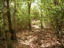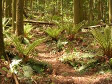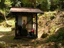| シダが勢いよく茂る | 林道に出る斜め向かいが登山口 | 「わき水」の地蔵 |