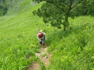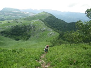 | きつい急斜面をゆっくりと | 大平山とドリーネ | 貫山が見えてきた |