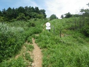 | 井出浦との分岐(ここは真っすぐ) | キキョウが早くも咲いている | |
