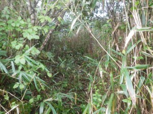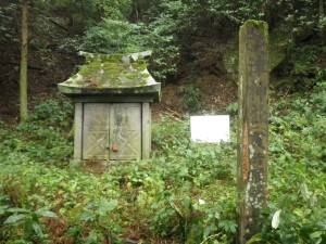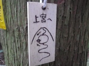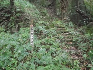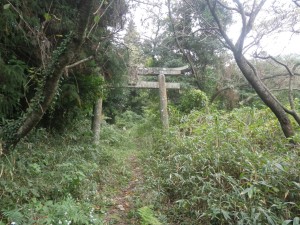 | 上宮(9:25) | 祠を左に入って急な斜面を登る | 笹の中を抜ける |