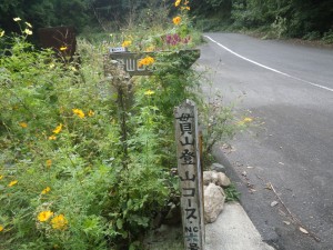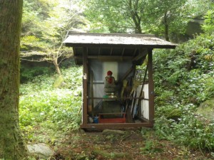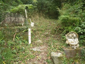 | 石が多い | わき水の地蔵(9:21) | 石段の横に登山コースとある |