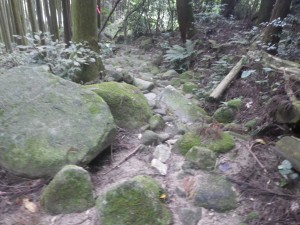 | 登山道(8:30) | 杉林が続く | 石がゴロゴロしている |