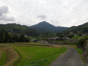 | 元の道に戻り往路を降る(11:16) | 振り返ると企救富士 | 良い形をしている |