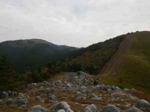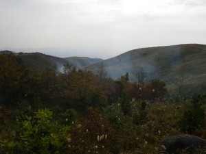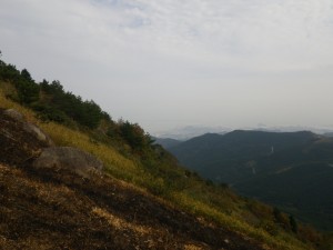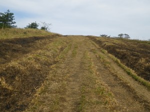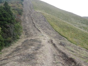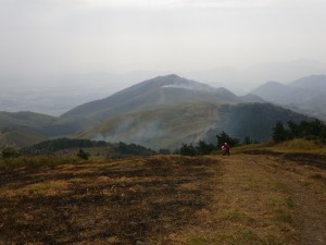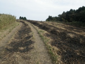 | 舗装がなくなると | 登山道に出る | 野焼きが行われている |