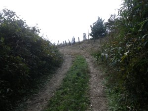 | 坂の手前の分岐を左に | 笹などが茂っている | 林道に出る |