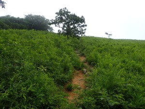 | 登山口(7:48) | 可愛いノヒメユリ | 急斜面をジグザグに |