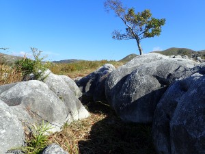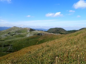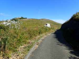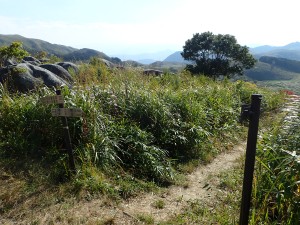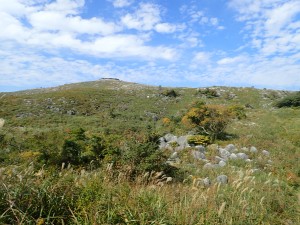 | 遠くに目るのが天狗岩 | 羊たちの間を歩く | リンドウが見ごろ |