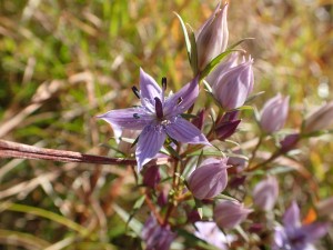 | 車道を横断し、再び登山道へ | ムラサキセンブリがたくさんある | ウメバチソウも咲いていた |