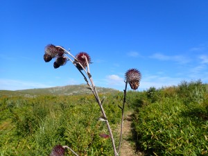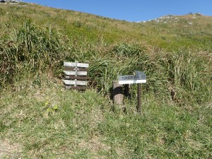 | 可愛いウマバチソウ | ここは左、茶ケ床園地方面へ | シャジンの花は永く咲く |