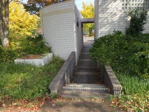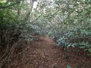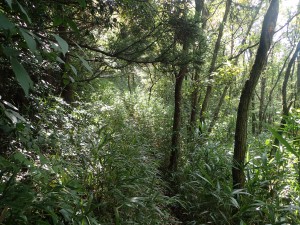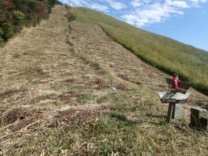 | 笹に覆われている | 四差路に出て右へ | 振り返ると急斜面が見える |