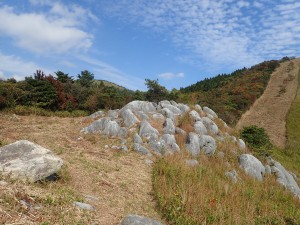 | ここにも大きな石 | 林道に出て左へ | ナギナタコウジュ |