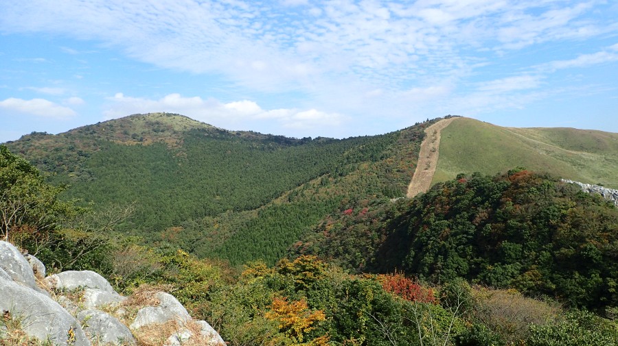 平成29年11月3日(月) 天気 晴れ ■出発時間:午前7時15分(自宅) ■メンバー:単独 平尾台は、全ての動植物の採取を禁止している。例え、たくさんあるワラビもである。残念ながらそれを知りながら盗掘する馬鹿者がいるらしい。 今日も同級生のF君がパトロール中に通報を受け、センブリを採取している人を探しているとのことであった。 そう言えば、以前はたくさんあったセンブリが、今はムラサキセンブリしか見かけなくなった。F君が言うには、ムラサキセンブリよりも通常のセンブリの方が、薬草として高く売れるからだそうだ。 と言うことで平尾台では、たくさんあるワラビも採取できないが、これは公園内(国定)だけのことなので公園から外に出るとその規制はない。 ただ、私有地となると許可がいるだろう。ま、それでも自家消費の山菜取りくらいでは問題なることは、まずないだろうが・・・・ 観察センターの駐車場から貫山へと歩く。下山は貫山頂上から母原林道へ降り、大穴から小穴へと周り、観察路を抜けて観察センターへ戻った。 長い林道歩きではあるが、ムカゴがたくさんあった。 山頂までと山頂では多くの人が、山歩きを楽しんでいたが、林道ではさすがに誰にも出会わなかった。 静かな山歩きは、孤独ではあるが、良いものである。 今日も自然に山に感謝!! |