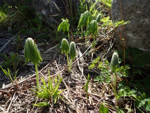 | キランソウ | 羊群を見ながら歩く | 花を終えたオキナグサ |