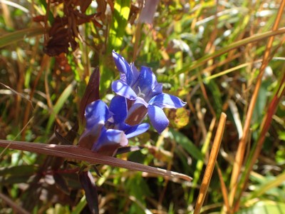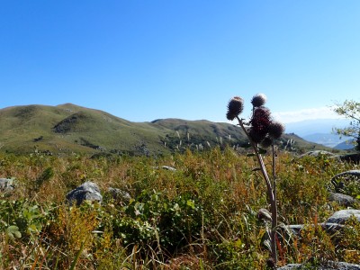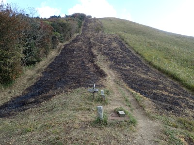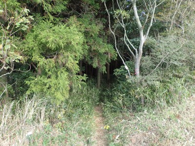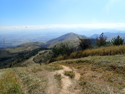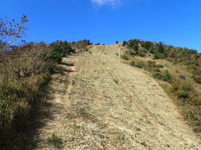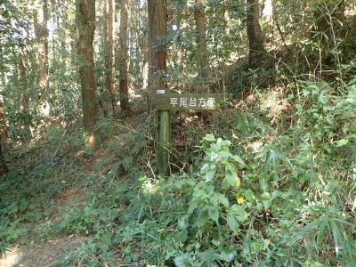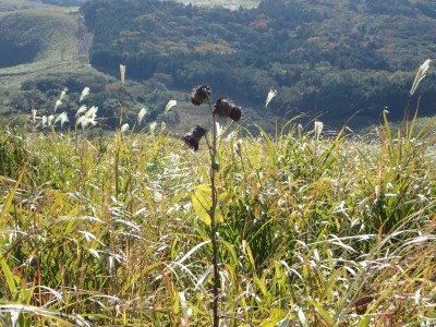 下山は四方台から中峠方面へと進むが途中のケルンから右手へ小穴の方へと降り、大平山への登り返す途中からカヤの中へと入り込む。しかし、セイタカアワダチソウの群落に道を阻まれ、何とか道に戻れた。