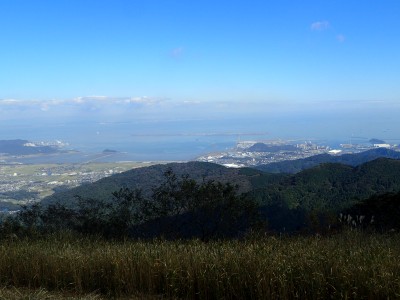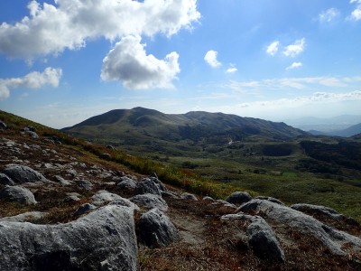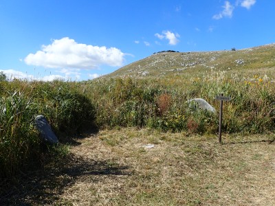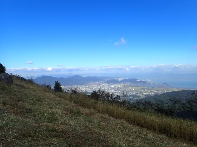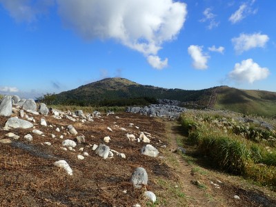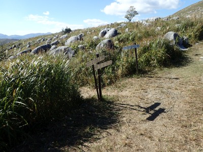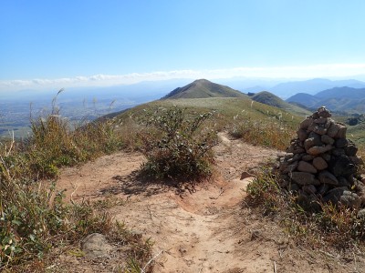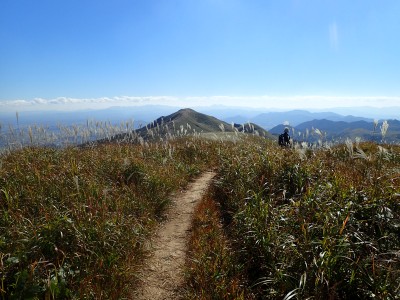 急斜面を喘いで山頂に飛び出す。そう、この場合「飛び出す」が相応しい。背の高さもあるカヤから突然山頂に出るからだ。