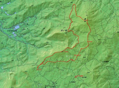 吹上峠から大平山を超え、急登をせずに四差路から大穴へと歩く。林道歩きをしばらくして貫山へ登山口より登山道へと行く。この道程りで他の登山者に出会ったことはない。