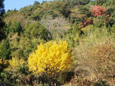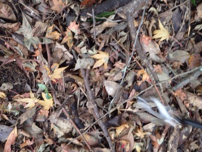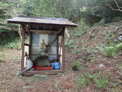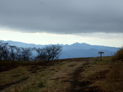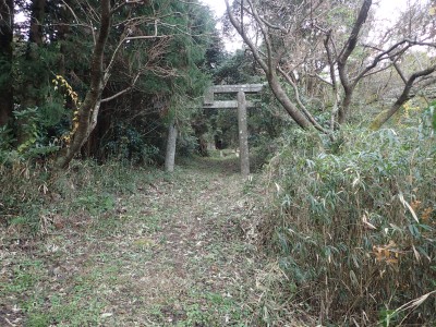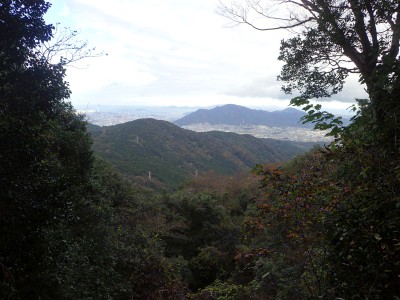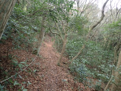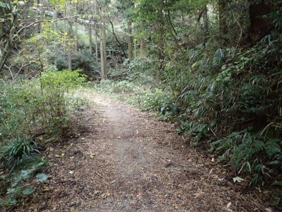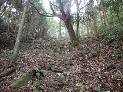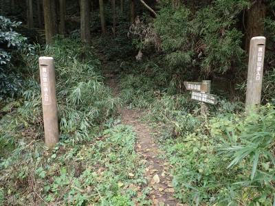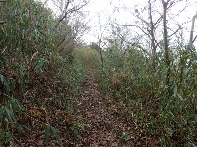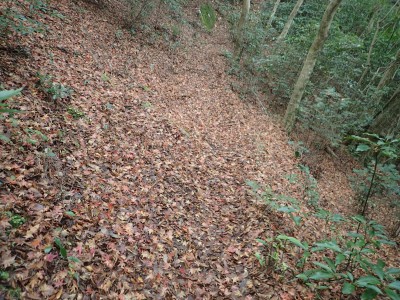 山頂に立つと風が強く、寒さでゆっくりとしていられず、モーニングも慌てて済ませ、誰もいない頂から早々に降ることにした。歩き始めた時に逆から二人の登山者が見えた。早くから登ってきたのであろう。下りは上宮には寄らず西に周り込む。カエデの落ち葉で登山道はフカフカ。この辺りは紅葉の時期は結構見応えあるかも知れないと思い来年の個人計画に入れておく。