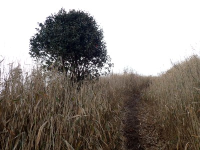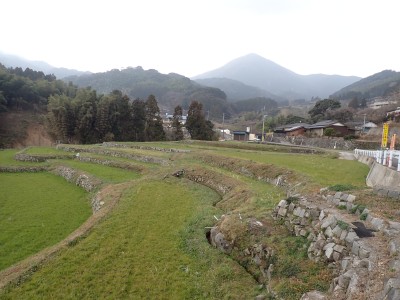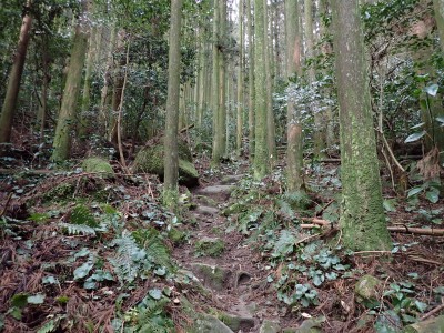さて山はその重たい「決意」とは裏腹に私の散歩コースの延長でお気軽コースである。登山道までの舗装道歩行の行程が長く少々飽きるかもしれないが、途中に芝津神社やきれいな段々畑、企救富士と呼ばれる貫山の山容が近づくのを眺めながら歩くのものんびりとしてなかなかよいものだ。