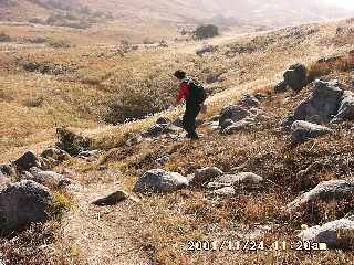 | 貫山が見える | 一旦下ります | この急斜面を登ると四方台から貫山への登山道 |