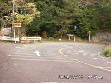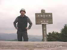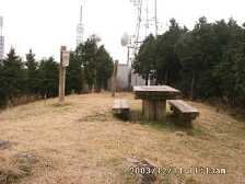 | 山頂でいつものポーズ | 山頂にはテーブルが2組 | 県道418号から撮影 |