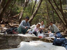 | 楽しく早めの昼食 | 下山・・・・テーブル状の川床 | 再び滝を |