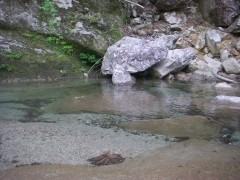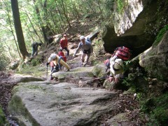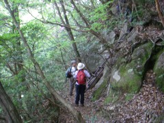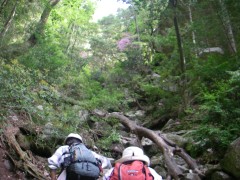| 避難岩屋とある | 谷間を上り詰める | ロープで登る |