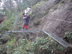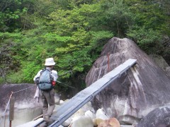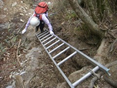 | 大崩山荘 | 丸太で組まれている | 岩壁をトラバース中 |