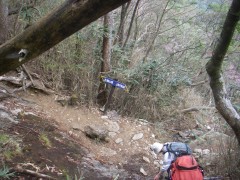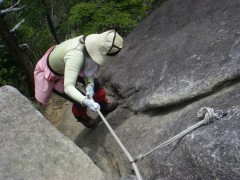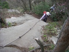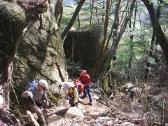 | 急斜面を全身で登る | 巨岩を支える小枝・・・・ | かなりきつい |