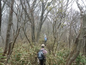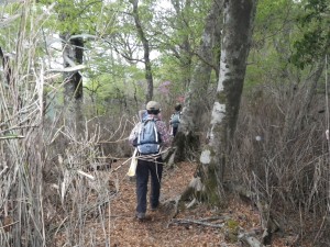 | スズタケの中を潜って歩き広場に出た | 広場で小休憩 | 鹿納坊主を目指す |