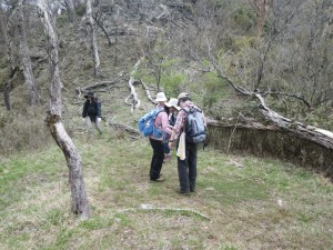 | 岩壁の下を歩く | 歩いてきた峰々 | 遠くに見えるのは日隠山か |