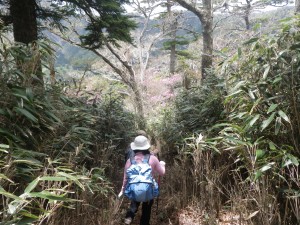 | ガスっているのでボケ気味 | 高度を上げる | スズタケは背の高さもある |