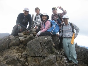 | 大崩山頂上にて全員で | MORIさんの奥さんとカラス(あこちゃん撮影) | 石塚にて(MORIさん撮影) |