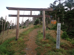 | 弥山頂上の弥山神社 | ご来光(5:00) | 鳥居がある |