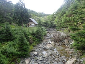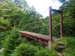 | 狼平小屋(7:10) | きれいです | 鉄の吊橋だ |