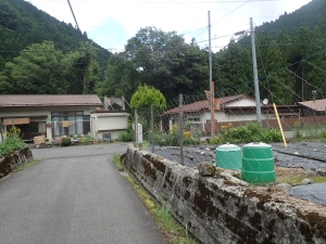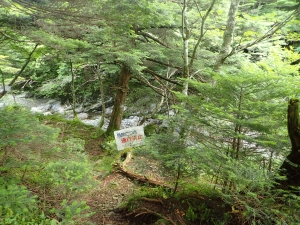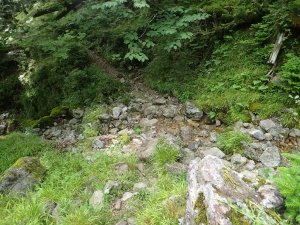| 橋から小屋を見る | 谷ルートは通行禁止 | 緩やかな上り |
